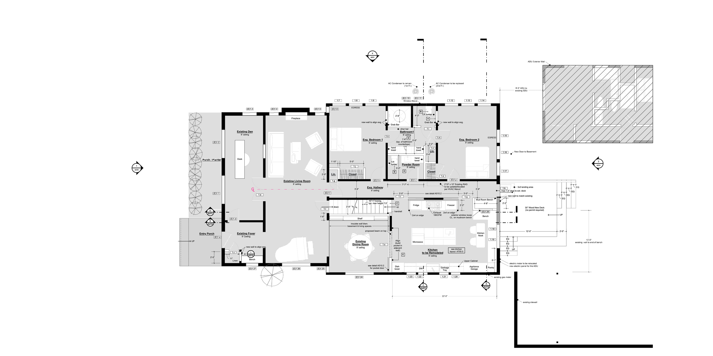 Our objective for this project is to modernize a residence accommodating a family of four within stringent budget constraints. As illustrated in the plan, our approach involves maximizing spatial openness while minimizing alterations to existing walls.