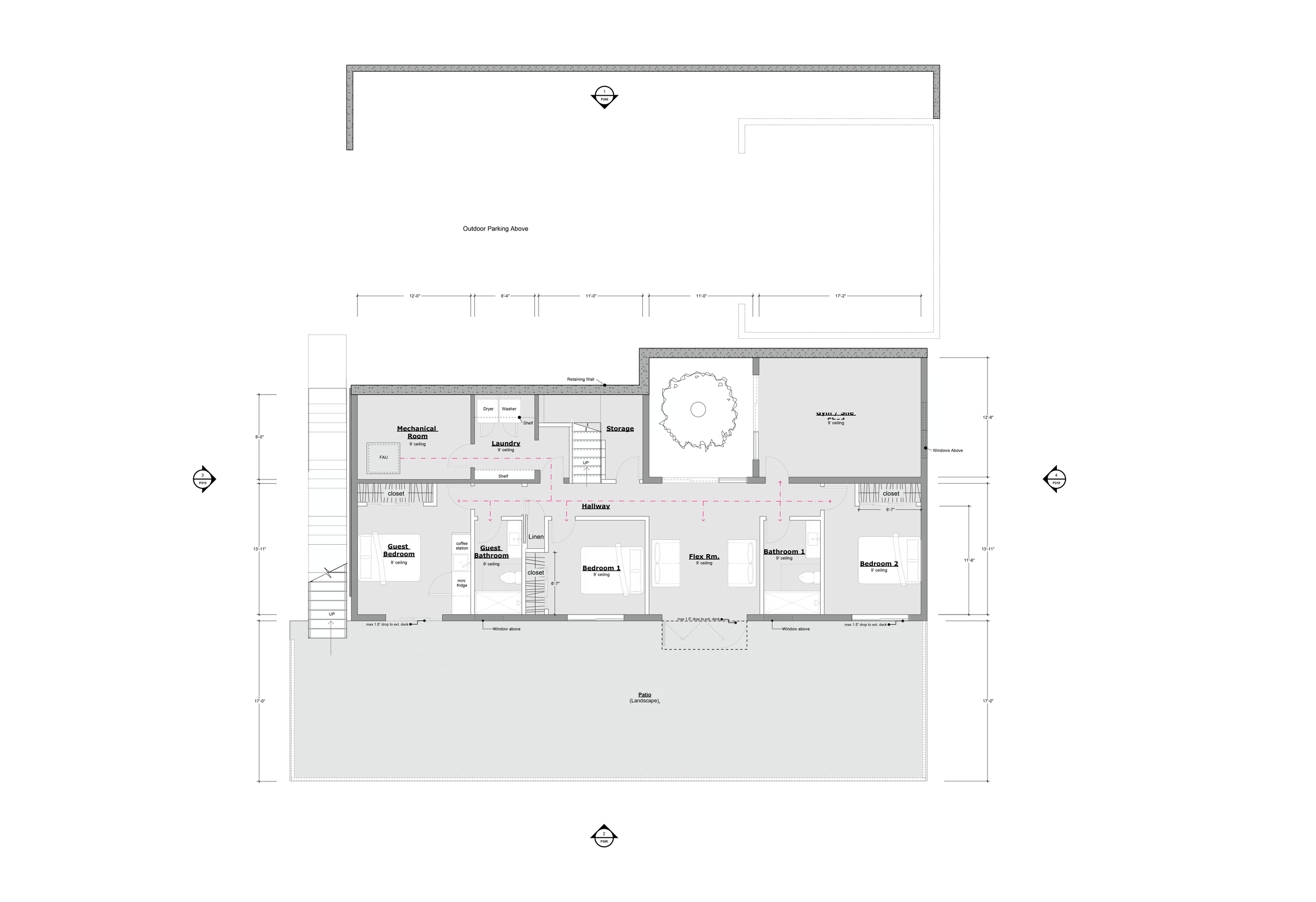 Complementing the indoor spaces, a central courtyard introduces natural light and ventilation while providing a tranquil outdoor retreat. This feature enhances the home’s connection to nature and serves as an extension of the living space, enriching the overall spatial quality and promoting a sense of openness.